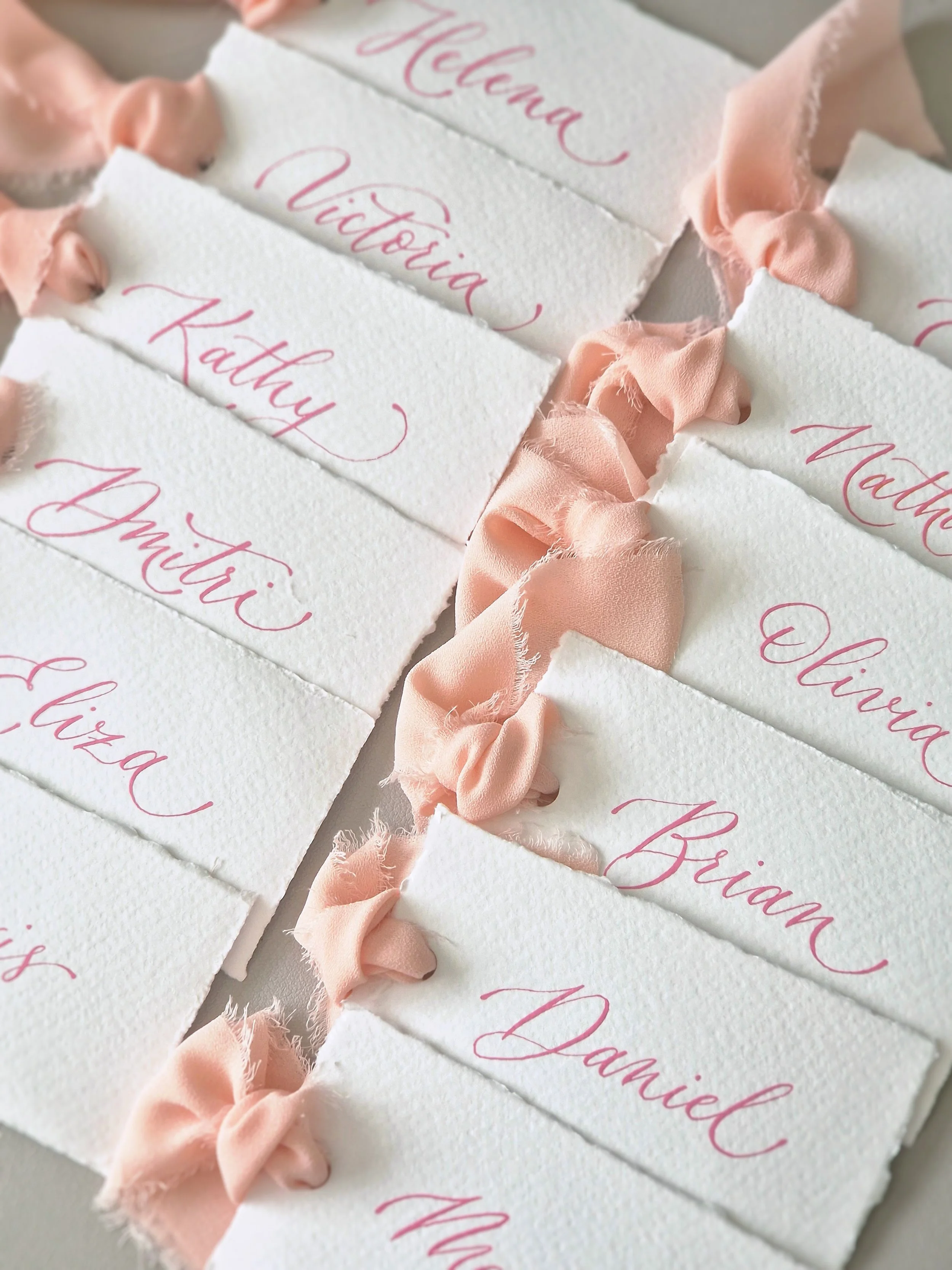 Ink and specialised pen tools are used to create place cards, menus, handwritten notes, invitations and more.