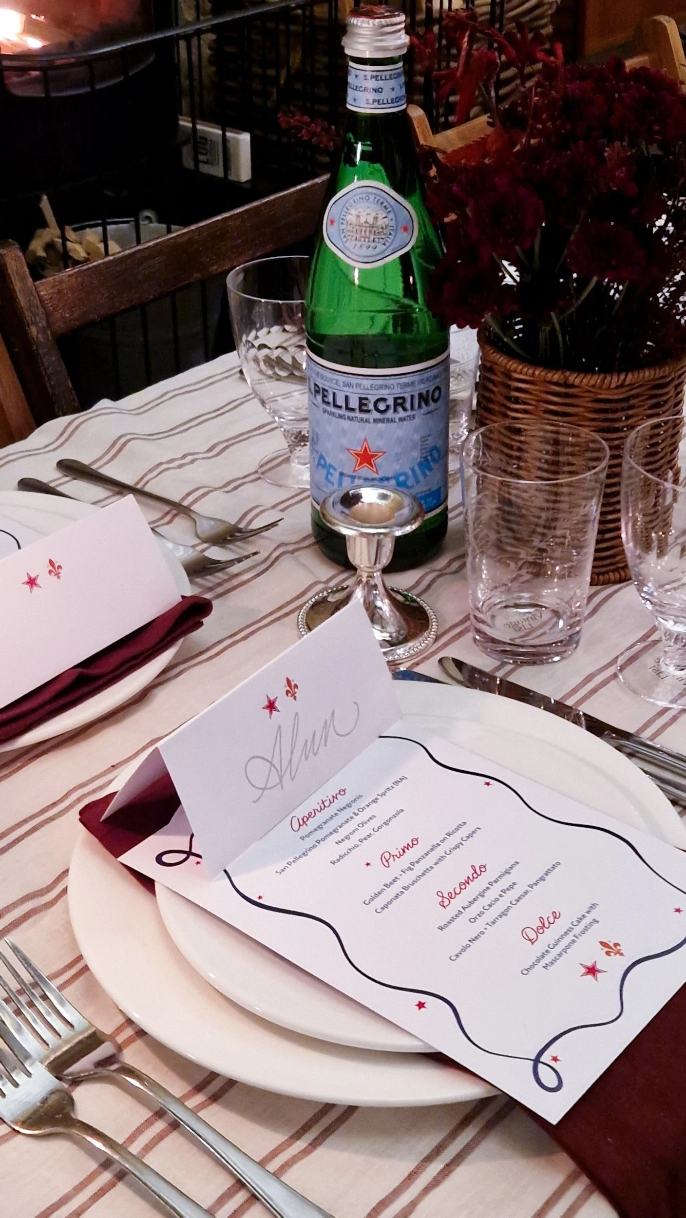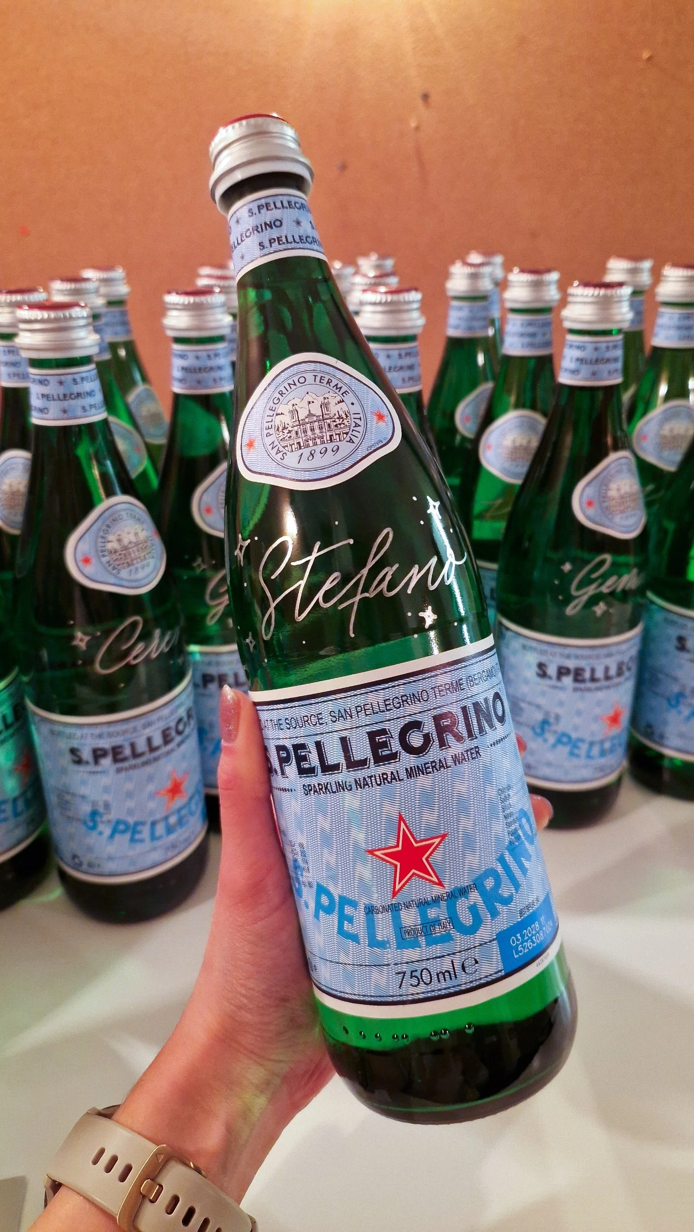 San Pellegrino hosted a cosy supper club with a touch of sparkle ✨ I was asked to provide silver calligraphy on their sparkling water bottles and place cards to set the beautiful tables.